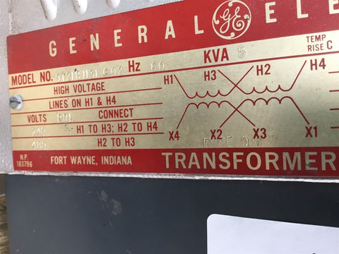 GENERAL ELECTRIC 9T21B1131 5 KVA TRANSFORMER 240 480 PRI, 240 480 SEC Return Policy Returns accepted within 30 days. Items sold as is cannot be returned, unless description is in error. Buyer pays return freight. Shipping Policy We ship almost all items with 1 business day of cleared payment. We ship USPS and UPS. We can ship on your account. If you will be shipping freight, please be sure to provide all delivery contact information including a phone number. We will need to know if you have a fork lift or dock.