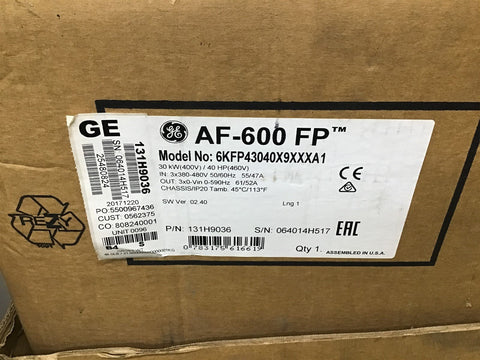 General Electric AF-600 FP 6KFP43040X9XXXA1 40 HP 460 V Return Policy Returns accepted within 30 days. Items sold as is cannot be returned, unless description is in error. Buyer pays return freight. Shipping Policy We ship almost all items with 1 business day of cleared payment. We ship USPS and UPS. We can ship on your account. If you will be shipping freight, please be sure to provide all delivery contact information including a phone number. We will need to know if you have a fork lift or dock.