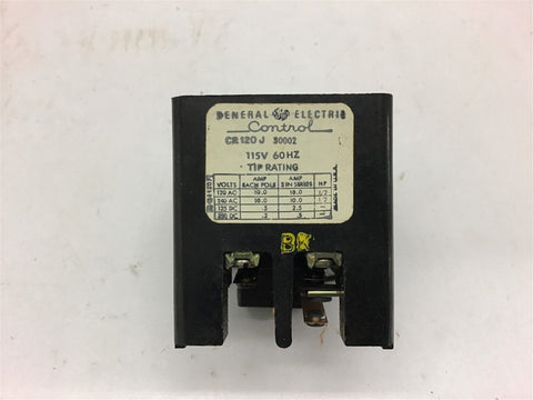 General Electric CR120J 30002 115 Volts 60 HZ Relay Return Policy Returns accepted within 30 days. Items sold as is cannot be returned, unless description is in error. Buyer pays return freight. Shipping Policy We ship almost all items with 1 business day of cleared payment. We ship USPS and UPS. We can ship on your account. If you will be shipping freight, please be sure to provide all delivery contact information including a phone number. We will need to know if you have a fork lift or dock.