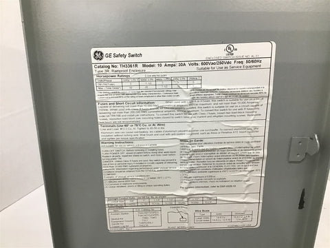 General Electric TH3361R 10/30 A 600V AC 250 VDC Type 3 R Fusible Return Policy Returns accepted within 30 days. Items sold as is cannot be returned, unless description is in error. Buyer pays return freight. Shipping Policy We ship almost all items with 1 business day of cleared payment. We ship USPS and UPS. We can ship on your account. If you will be shipping freight, please be sure to provide all delivery contact information including a phone number. We will need to know if you have a fork lift or dock.