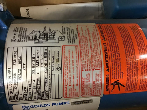 Goulds PUMPS C48C06A06 1 Hp 115/230 Volts 3450 Rpm JRD10 Jet Pump Return Policy Returns accepted within 30 days. Items sold as is cannot be returned, unless description is in error. Buyer pays return freight. Shipping Policy We ship almost all items with 1 business day of cleared payment. We ship USPS and UPS. We can ship on your account. If you will be shipping freight, please be sure to provide all delivery contact information including a phone number. We will need to know if you have a fork lift or dock.