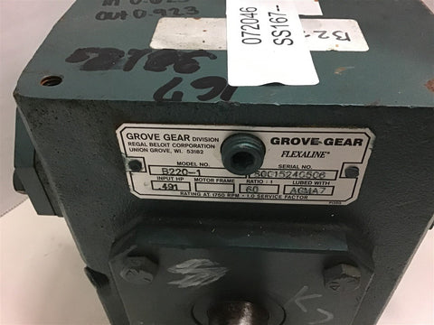 Grove Gear B220-1 Left/Right Angle Gear Reducer 60:1 Ratio .491 Input HP