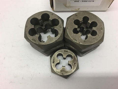 Hex Threading Die Set Various Sizes Return Policy Returns accepted within 30 days. Items sold as is cannot be returned, unless description is in error. Buyer pays return freight. Shipping Policy We ship almost all items with 1 business day of cleared payment. We ship USPS and UPS. We can ship on your account. If you will be shipping freight, please be sure to provide all delivery contact information including a phone number. We will need to know if you have a fork lift or dock.