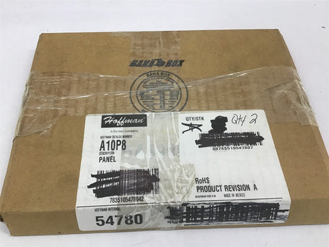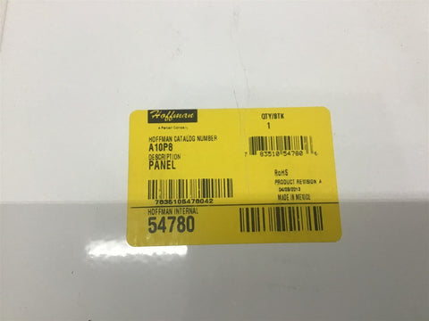 Hoffman A10P8 Panels For Junction Boxes 2 White Panels 8X10 Return Policy Returns accepted within 30 days. Items sold as is cannot be returned, unless description is in error. Buyer pays return freight. Shipping Policy We ship almost all items with 1 business day of cleared payment. We ship USPS and UPS. We can ship on your account. If you will be shipping freight, please be sure to provide all delivery contact information including a phone number. We will need to know if you have a fork lift or dock.