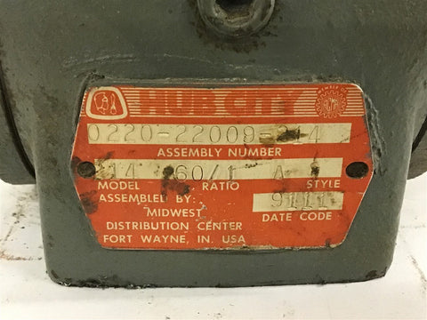 Hub city 0220-22009-214 Model 214 60:1 Ratio Right / Left Angle Gear Reducer Return Policy Returns accepted within 30 days. Items sold as is cannot be returned, unless description is in error. Buyer pays return freight. Shipping Policy We ship almost all items with 1 business day of cleared payment. We ship USPS and UPS. We can ship on your account. If you will be shipping freight, please be sure to provide all delivery contact information including a phone number. We will need to know if you have a fork lift or dock.