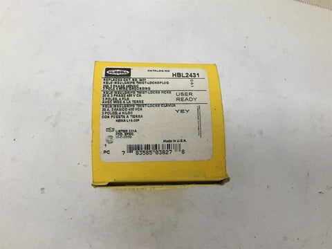 Hubbell HBL2431 Insulgrip Twist-Lock Plug Return Policy Returns accepted within 30 days. Items sold as is cannot be returned, unless description is in error. Buyer pays return freight. Shipping Policy We ship almost all items with 1 business day of cleared payment. We ship USPS and UPS. We can ship on your account. If you will be shipping freight, please be sure to provide all delivery contact information including a phone number. We will need to know if you have a fork lift or dock.