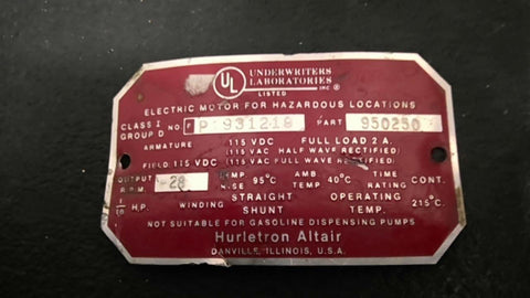 Hurletron Altair 950250 DC Motor 1/10 HP 115 VDC 28 Output RPM