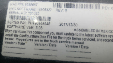HYG Software 8529667 Dash Display cluster Return Policy Returns accepted within 30 days. Items sold as is cannot be returned, unless description is in error. Buyer pays return freight. Shipping Policy We ship almost all items with 1 business day of cleared payment. We ship USPS and UPS. We can ship on your account. If you will be shipping freight, please be sure to provide all delivery contact information including a phone number. We will need to know if you have a fork lift or dock.
