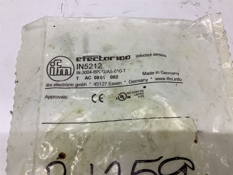 IFM Efector IN5202 Sensor Return Policy Returns accepted within 30 days. Items sold as is cannot be returned, unless description is in error. Buyer pays return freight. Shipping Policy We ship almost all items with 1 business day of cleared payment. We ship USPS and UPS. We can ship on your account. If you will be shipping freight, please be sure to provide all delivery contact information including a phone number. We will need to know if you have a fork lift or dock.