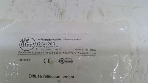 IFM OGH200 Diffuse Reflection Sensor Return Policy Returns accepted within 30 days. Items sold as is cannot be returned, unless description is in error. Buyer pays return freight. Shipping Policy We ship almost all items with 1 business day of cleared payment. We ship USPS and UPS. We can ship on your account. If you will be shipping freight, please be sure to provide all delivery contact information including a phone number. We will need to know if you have a fork lift or dock.