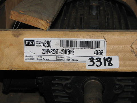 Ingersol Rand Weg Motor 3Ph 20Hp 1750 Rpm 256T Frame 200V Part #32037616