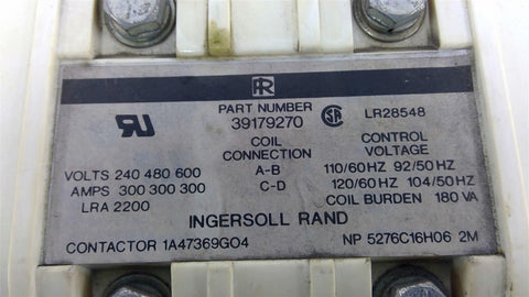 Ingersoll Rand 39179270 Contactor 600 Volts 300 Amp 120 Volt Coil