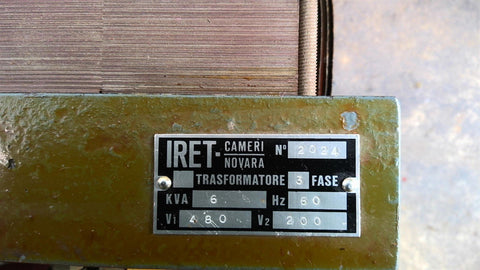 IRET 2024 6 KVA Transformer 480 Pri V 200 Sec V 3 Phase