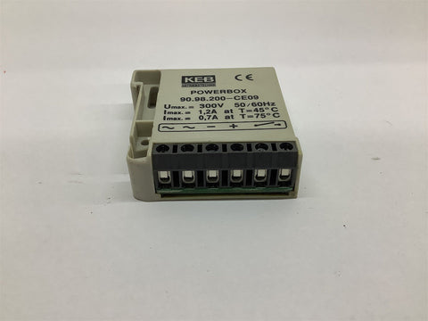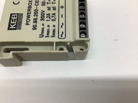 KEB Powerbox 90.98.200-CE09 300 V 50/60 Hz Return Policy Returns accepted within 30 days. Items sold as is cannot be returned, unless description is in error. Buyer pays return freight. Shipping Policy We ship almost all items with 1 business day of cleared payment. We ship USPS and UPS. We can ship on your account. If you will be shipping freight, please be sure to provide all delivery contact information including a phone number. We will need to know if you have a fork lift or dock.