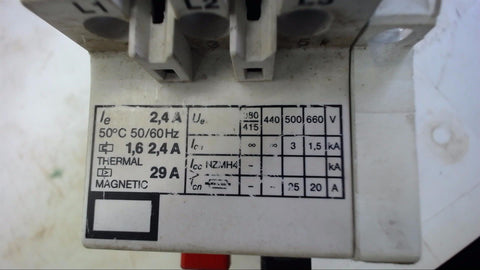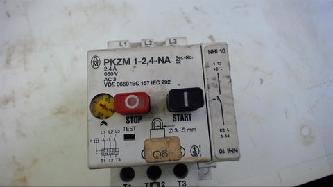 KLOCKNER-MOELLER PKZM1-2.4-NA 1.6-2.4 AMP STARTER, MOTOR PROTECTOR 660 VOLTS Return Policy Returns accepted within 30 days. Items sold as is cannot be returned, unless description is in error. Buyer pays return freight. Shipping Policy We ship almost all items with 1 business day of cleared payment. We ship USPS and UPS. We can ship on your account. If you will be shipping freight, please be sure to provide all delivery contact information including a phone number. We will need to know if you have a fork lift or dock.
