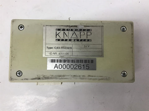 Knapp CAN-RS232 Converter 24 V Return Policy Returns accepted within 30 days. Items sold as is cannot be returned, unless description is in error. Buyer pays return freight. Shipping Policy We ship almost all items with 1 business day of cleared payment. We ship USPS and UPS. We can ship on your account. If you will be shipping freight, please be sure to provide all delivery contact information including a phone number. We will need to know if you have a fork lift or dock.