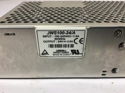 Lambda JWS100-24/A Power Supply 100-240 Vac 1.5 Amp 24V DC Output Return Policy Returns accepted within 30 days. Items sold as is cannot be returned, unless description is in error. Buyer pays return freight. Shipping Policy We ship almost all items with 1 business day of cleared payment. We ship USPS and UPS. We can ship on your account. If you will be shipping freight, please be sure to provide all delivery contact information including a phone number. We will need to know if you have a fork lift or dock.
