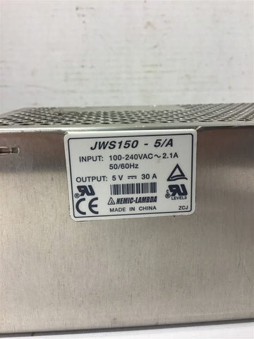 Lambda JWS150-5/A Power Supply 100-240 Vac Input 5V DC Output Return Policy Returns accepted within 30 days. Items sold as is cannot be returned, unless description is in error. Buyer pays return freight. Shipping Policy We ship almost all items with 1 business day of cleared payment. We ship USPS and UPS. We can ship on your account. If you will be shipping freight, please be sure to provide all delivery contact information including a phone number. We will need to know if you have a fork lift or dock.