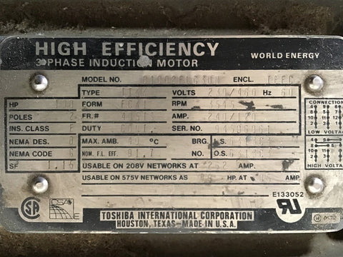 3545 RPM---405TS Frame---TEFC---8" Inlet and Outlet---Used---Good Visual Condition---7/20/KH