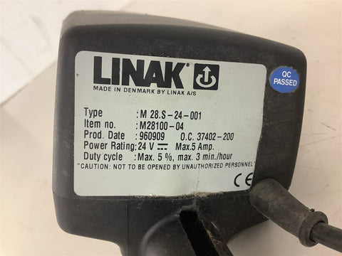 Linak Actuator M28.S-24-001 24 V 5 Amp Actuator Return Policy Returns accepted within 30 days. Items sold as is cannot be returned, unless description is in error. Buyer pays return freight. Shipping Policy We ship almost all items with 1 business day of cleared payment. We ship USPS and UPS. We can ship on your account. If you will be shipping freight, please be sure to provide all delivery contact information including a phone number. We will need to know if you have a fork lift or dock.