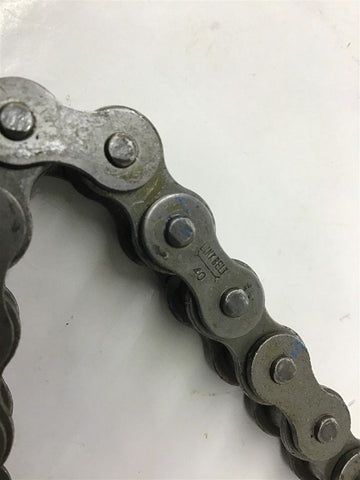 Link Belt 40RIV 10' L Roller Chain Return Policy Returns accepted within 30 days. Items sold as is cannot be returned, unless description is in error. Buyer pays return freight. Shipping Policy We ship almost all items with 1 business day of cleared payment. We ship USPS and UPS. We can ship on your account. If you will be shipping freight, please be sure to provide all delivery contact information including a phone number. We will need to know if you have a fork lift or dock.