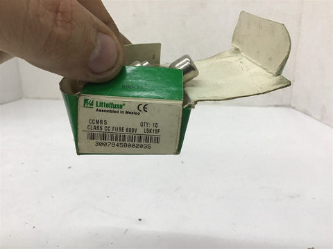 LittelFuse CCMR 5 Fuse 5 A 600V Lot Of 10 Return Policy Returns accepted within 30 days. Items sold as is cannot be returned, unless description is in error. Buyer pays return freight. Shipping Policy We ship almost all items with 1 business day of cleared payment. We ship USPS and UPS. We can ship on your account. If you will be shipping freight, please be sure to provide all delivery contact information including a phone number. We will need to know if you have a fork lift or dock.