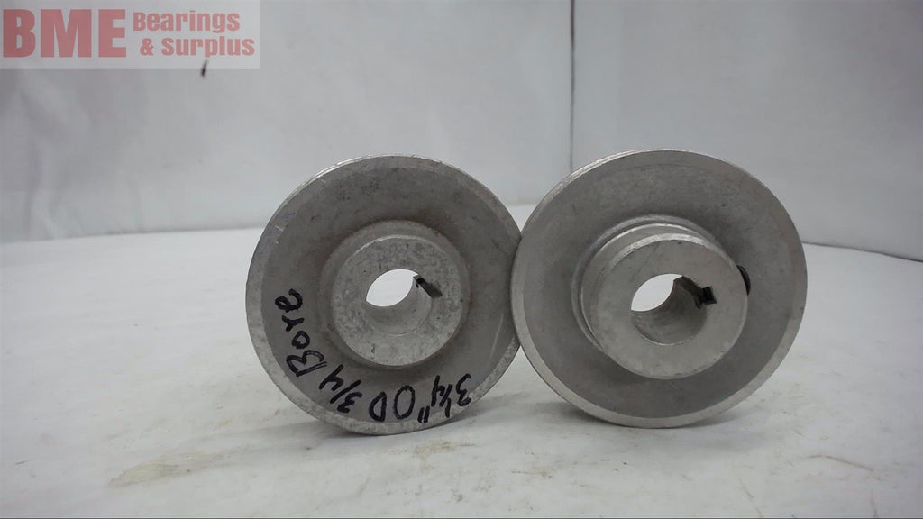 LOT OF 2 -- ALUMINUM SINGLE GROOVE PULLEYS 3 1/4" OD, 3/4" BORE