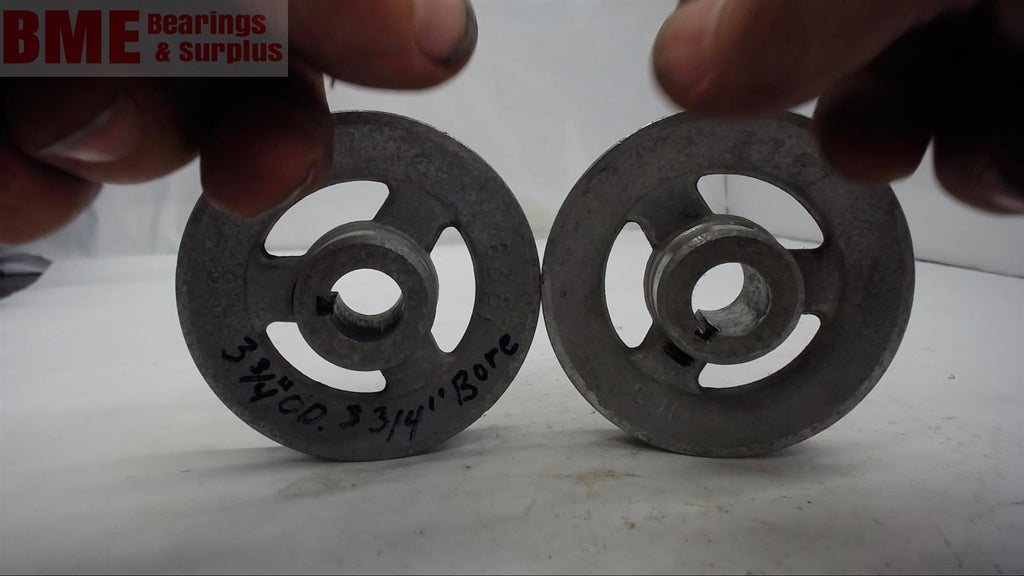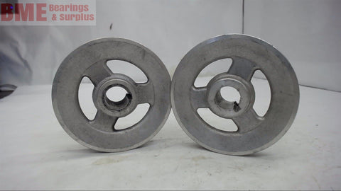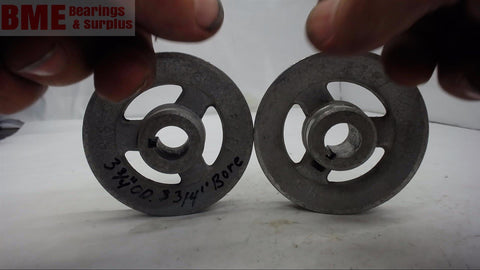 LOT OF 2 -- ALUMINUM SINGLE GROOVE PULLEYS 3 3/4" OD, 3/4" BORE