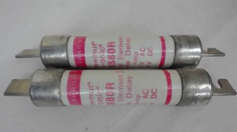 Lot Of 2 Gould Shawmut Trs80R Time Delay Fuse, 80 Amp, 600 V Ac, 600 V Dc