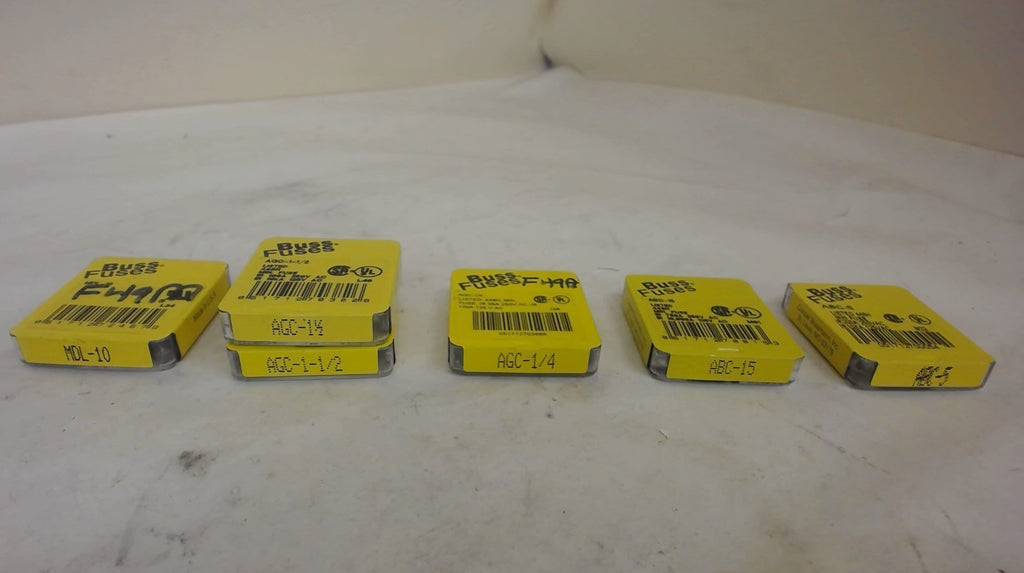 LOT OF 27 BUSSMANN FUSES, INCLUDES: MDL-10, AGC-1/2, AGC-1/4, ABC-15, & ABC-5