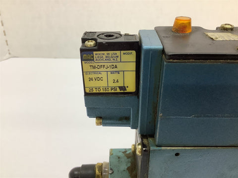 MAC TM-DFFJ-1DA Solenoid Valve 24 VDC 2.4 W 25-150 PSI Return Policy Returns accepted within 30 days. Items sold as is cannot be returned, unless description is in error. Buyer pays return freight. Shipping Policy We ship almost all items with 1 business day of cleared payment. We ship USPS and UPS. We can ship on your account. If you will be shipping freight, please be sure to provide all delivery contact information including a phone number. We will need to know if you have a fork lift or dock.