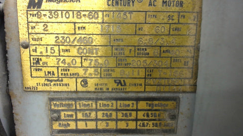 Magnetek, 9-391018-60, 2 Hp, 1715 Rpm, 4P, 145T Frame, 230/460 Volts, Ac Motor