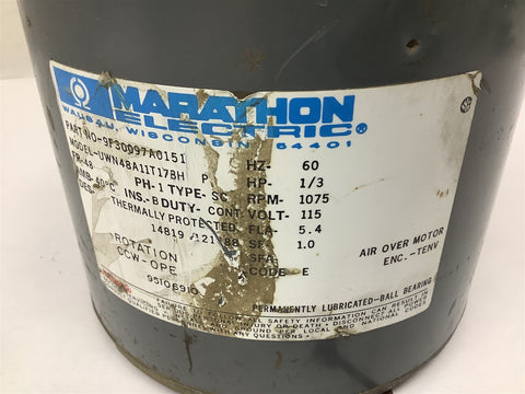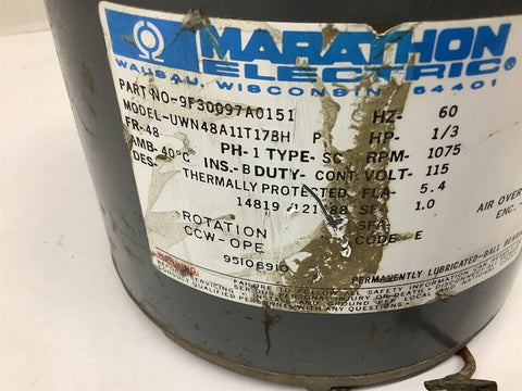 Marathon Electric 9F30007A0151 AC Motor 48-FR 60HZ 1/3HP 1075RPM 115V TENV 48-FR