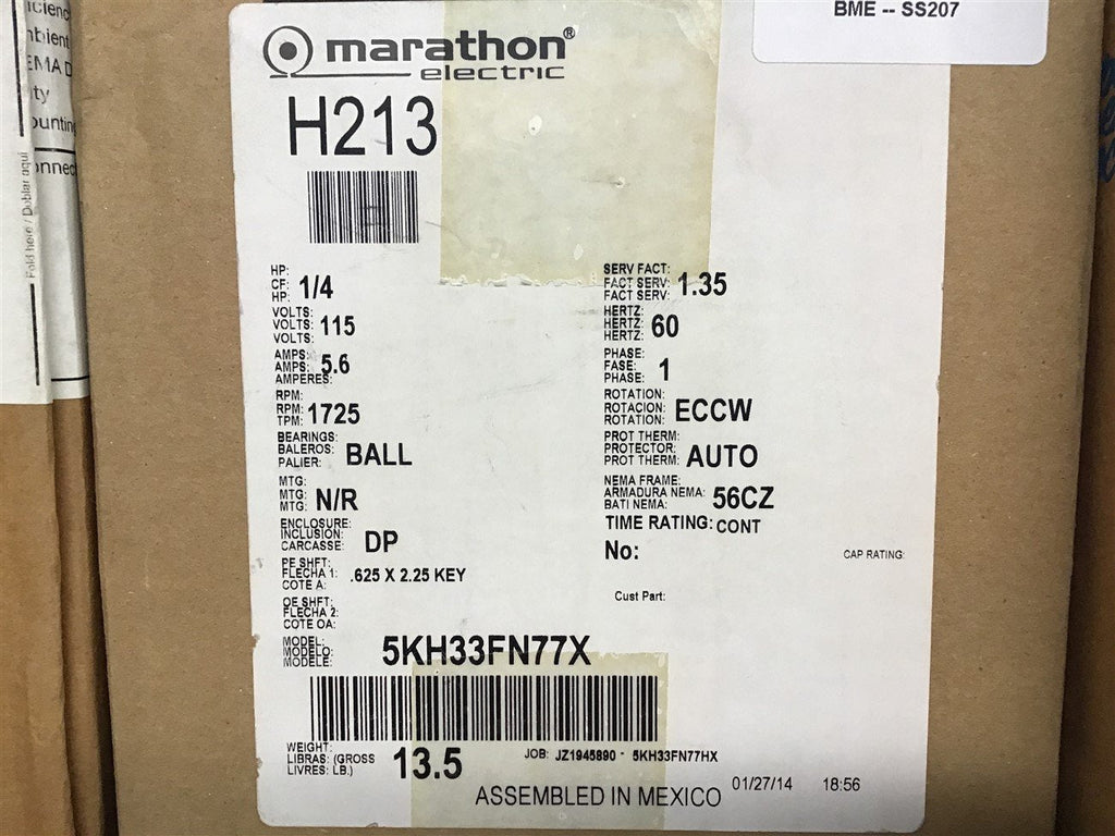Marathon H213 1/4 HP AC Motor 115 Volts 1725 Rpm 56CZ Frame Return Policy Returns accepted within 30 days. Items sold as is cannot be returned, unless description is in error. Buyer pays return freight. Shipping Policy We ship almost all items with 1 business day of cleared payment. We ship USPS and UPS. We can ship on your account. If you will be shipping freight, please be sure to provide all delivery contact information including a phone number. We will need to know if you have a fork lift or dock.