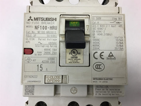 Mitsubishi NF100-HRU3015 15 Amp Circuit Breaker