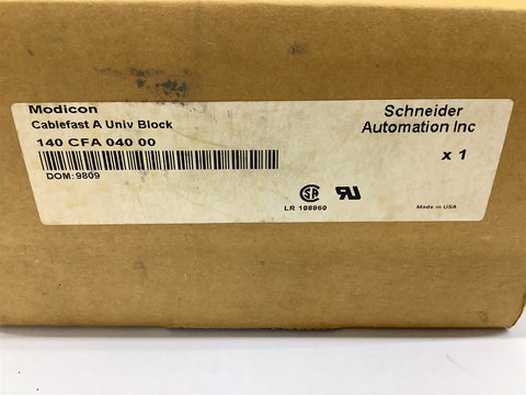 Modicon 140CFA04000 Cabkefast A Universal Block Return Policy Returns accepted within 30 days. Items sold as is cannot be returned, unless description is in error. Buyer pays return freight. Shipping Policy We ship almost all items with 1 business day of cleared payment. We ship USPS and UPS. We can ship on your account. If you will be shipping freight, please be sure to provide all delivery contact information including a phone number. We will need to know if you have a fork lift or dock.
