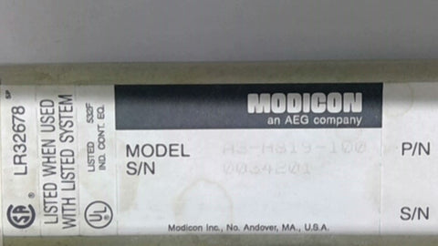 Modicon AS-H819-100 PLC Rack Return Policy Returns accepted within 30 days. Items sold as is cannot be returned, unless description is in error. Buyer pays return freight. Shipping Policy We ship almost all items with 1 business day of cleared payment. We ship USPS and UPS. We can ship on your account. If you will be shipping freight, please be sure to provide all delivery contact information including a phone number. We will need to know if you have a fork lift or dock.