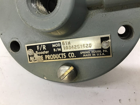 Moore Products Co. 61H Pneumatic Booster Relay 7/16" Ports Return Policy Returns accepted within 30 days. Items sold as is cannot be returned, unless description is in error. Buyer pays return freight. Shipping Policy We ship almost all items with 1 business day of cleared payment. We ship USPS and UPS. We can ship on your account. If you will be shipping freight, please be sure to provide all delivery contact information including a phone number. We will need to know if you have a fork lift or dock.