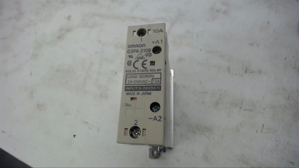 OMRON G3PA-210B SOLID STATE RELAY 24-240 VAC 10 AMP Return Policy Returns accepted within 30 days. Items sold as is cannot be returned, unless description is in error. Buyer pays return freight. Shipping Policy We ship almost all items with 1 business day of cleared payment. We ship USPS and UPS. We can ship on your account. If you will be shipping freight, please be sure to provide all delivery contact information including a phone number. We will need to know if you have a fork lift or dock.