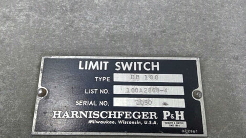 P&H DB 100 Limit Switch Return Policy Returns accepted within 30 days. Items sold as is cannot be returned, unless description is in error. Buyer pays return freight. Shipping Policy We ship almost all items with 1 business day of cleared payment. We ship USPS and UPS. We can ship on your account. If you will be shipping freight, please be sure to provide all delivery contact information including a phone number. We will need to know if you have a fork lift or dock.