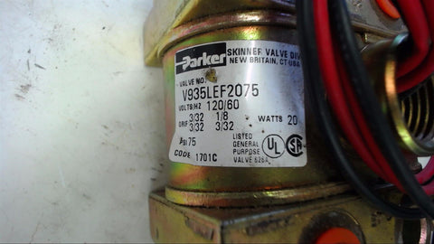 PARKER V935LEF2075 4 WAY VALVE 120 VOLT, 60 HZ, 20 WATTS, 75 PSI Return Policy Returns accepted within 30 days. Items sold as is cannot be returned, unless description is in error. Buyer pays return freight. Shipping Policy We ship almost all items with 1 business day of cleared payment. We ship USPS and UPS. We can ship on your account. If you will be shipping freight, please be sure to provide all delivery contact information including a phone number. We will need to know if you have a fork lift or dock.