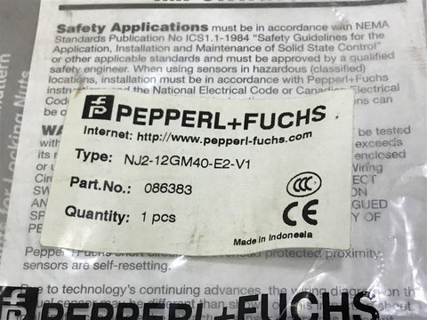 Pepperl+Fuchs NJ2-12GM40-E2-V1 086383 Inductive Proximity Sensor Return Policy Returns accepted within 30 days. Items sold as is cannot be returned, unless description is in error. Buyer pays return freight. Shipping Policy We ship almost all items with 1 business day of cleared payment. We ship USPS and UPS. We can ship on your account. If you will be shipping freight, please be sure to provide all delivery contact information including a phone number. We will need to know if you have a fork lift or dock.