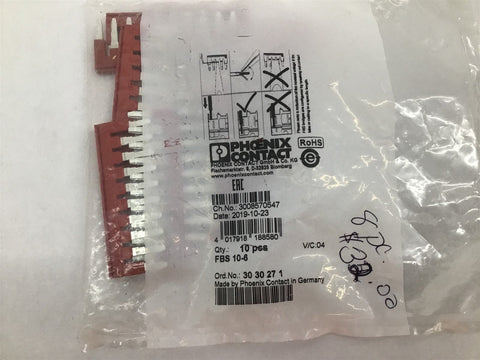 Phoenix Contact Plug-in Bridge FBS 10-6 3030271 Lot Of 8 Return Policy Returns accepted within 30 days. Items sold as is cannot be returned, unless description is in error. Buyer pays return freight. Shipping Policy We ship almost all items with 1 business day of cleared payment. We ship USPS and UPS. We can ship on your account. If you will be shipping freight, please be sure to provide all delivery contact information including a phone number. We will need to know if you have a fork lift or dock.