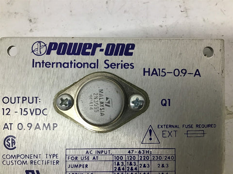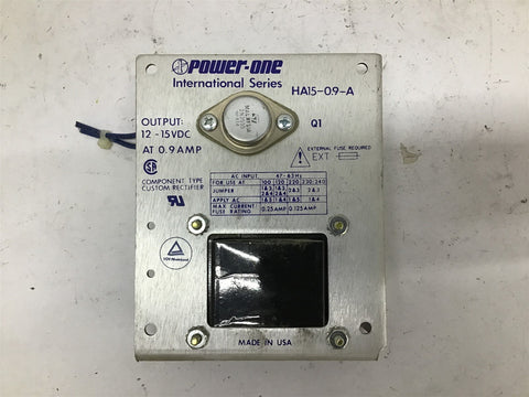 Power-One HA15-0.9-A Power Supply 12-15 VDC 0.9 Amp Return Policy Returns accepted within 30 days. Items sold as is cannot be returned, unless description is in error. Buyer pays return freight. Shipping Policy We ship almost all items with 1 business day of cleared payment. We ship USPS and UPS. We can ship on your account. If you will be shipping freight, please be sure to provide all delivery contact information including a phone number. We will need to know if you have a fork lift or dock.