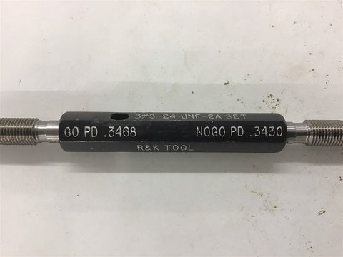 R&K Tool 3/8-24 UNF-2A Set Threaded Plug Gage GOPD 3468 NOGO PD 3430 Return Policy Returns accepted within 30 days. Items sold as is cannot be returned, unless description is in error. Buyer pays return freight. Shipping Policy We ship almost all items with 1 business day of cleared payment. We ship USPS and UPS. We can ship on your account. If you will be shipping freight, please be sure to provide all delivery contact information including a phone number. We will need to know if you have a fork lift or dock.