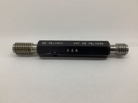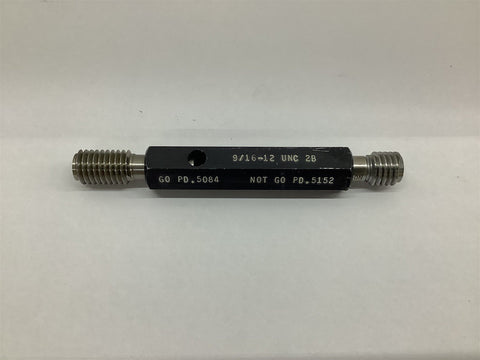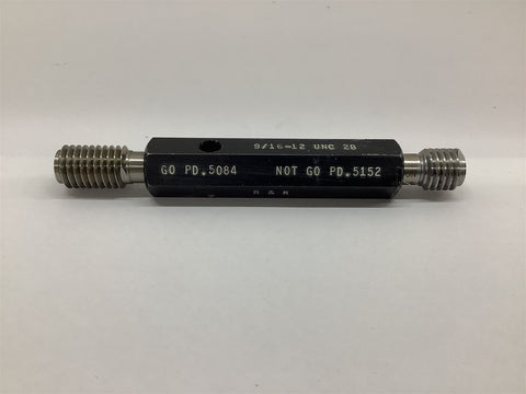 R&K Tool 9/16-12 UNC 2B Threaded Plug Gage GO .5084 NO GO .5152 Return Policy Returns accepted within 30 days. Items sold as is cannot be returned, unless description is in error. Buyer pays return freight. Shipping Policy We ship almost all items with 1 business day of cleared payment. We ship USPS and UPS. We can ship on your account. If you will be shipping freight, please be sure to provide all delivery contact information including a phone number. We will need to know if you have a fork lift or dock.