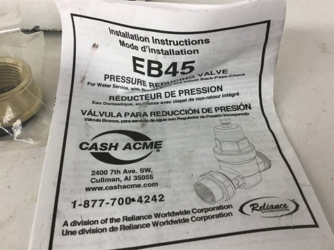 Reliance EB45 Pressure Reducing Valve 3/4" Return Policy Returns accepted within 30 days. Items sold as is cannot be returned, unless description is in error. Buyer pays return freight. Shipping Policy We ship almost all items with 1 business day of cleared payment. We ship USPS and UPS. We can ship on your account. If you will be shipping freight, please be sure to provide all delivery contact information including a phone number. We will need to know if you have a fork lift or dock.