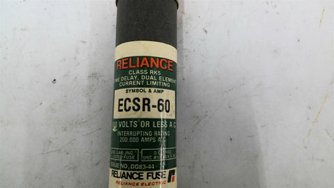 Reliance ECSR-60 Fuse 60 Amp 600 Volts Return Policy Returns accepted within 30 days. Items sold as is cannot be returned, unless description is in error. Buyer pays return freight. Shipping Policy We ship almost all items with 1 business day of cleared payment. We ship USPS and UPS. We can ship on your account. If you will be shipping freight, please be sure to provide all delivery contact information including a phone number. We will need to know if you have a fork lift or dock.