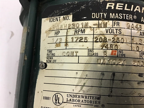 Reliance P48H2301N 1/3 HP AC Motor208-230/460 volts 1800 Rpm 4P 48 Frame Return Policy Returns accepted within 30 days. Items sold as is cannot be returned, unless description is in error. Buyer pays return freight. Shipping Policy We ship almost all items with 1 business day of cleared payment. We ship USPS and UPS. We can ship on your account. If you will be shipping freight, please be sure to provide all delivery contact information including a phone number. We will need to know if you have a fork lift or dock.