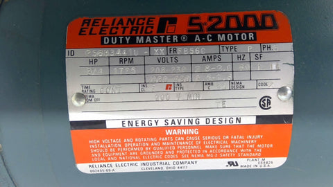 Reliance P56H3441U AC Motor 3/4 Hp 208-230/460-480 V 1800 Rpm 4P Fr FB56C 3 Ph Return Policy Returns accepted within 30 days. Items sold as is cannot be returned, unless description is in error. Buyer pays return freight. Shipping Policy We ship almost all items with 1 business day of cleared payment. We ship USPS and UPS. We can ship on your account. If you will be shipping freight, please be sure to provide all delivery contact information including a phone number. We will need to know if you have a fork lift or dock.